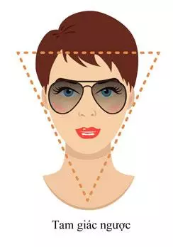 Mặt tam giác này có một cái trán hẹp và mở rộng tại má và vùng cằm. Để thêm chiều rộng và làm tăng thêm khoảng hẹp của mặt, thử những bộ gọng kính rộng vành và đuợc nhấn bởi màu sắc hay hoạ tiết trên phần nửa đỉnh. Hay kiểu dáng mắt mèo.
