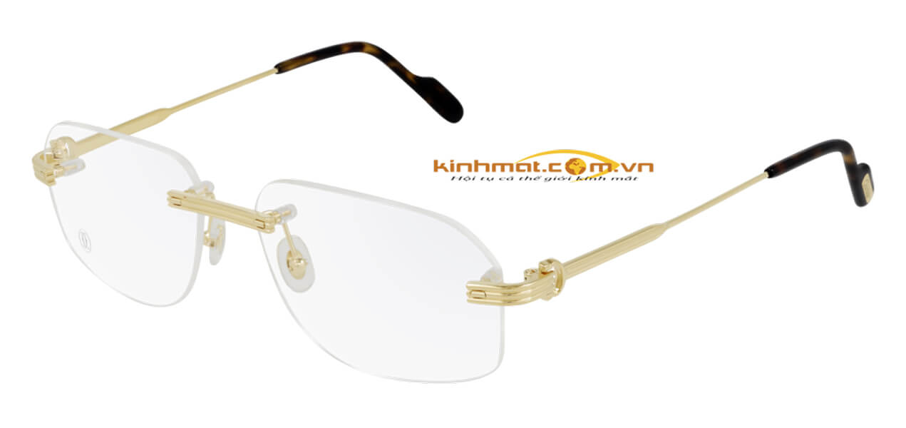 Giữ nguyên kiểu gọng kính đuôi chuột mảnh với điểm nhấn bứt phá ở phần chuôi càng nhựa đồi mổi với nguyên dòng chữ Cartier đầy danh giá được khắc laser tinh xảo