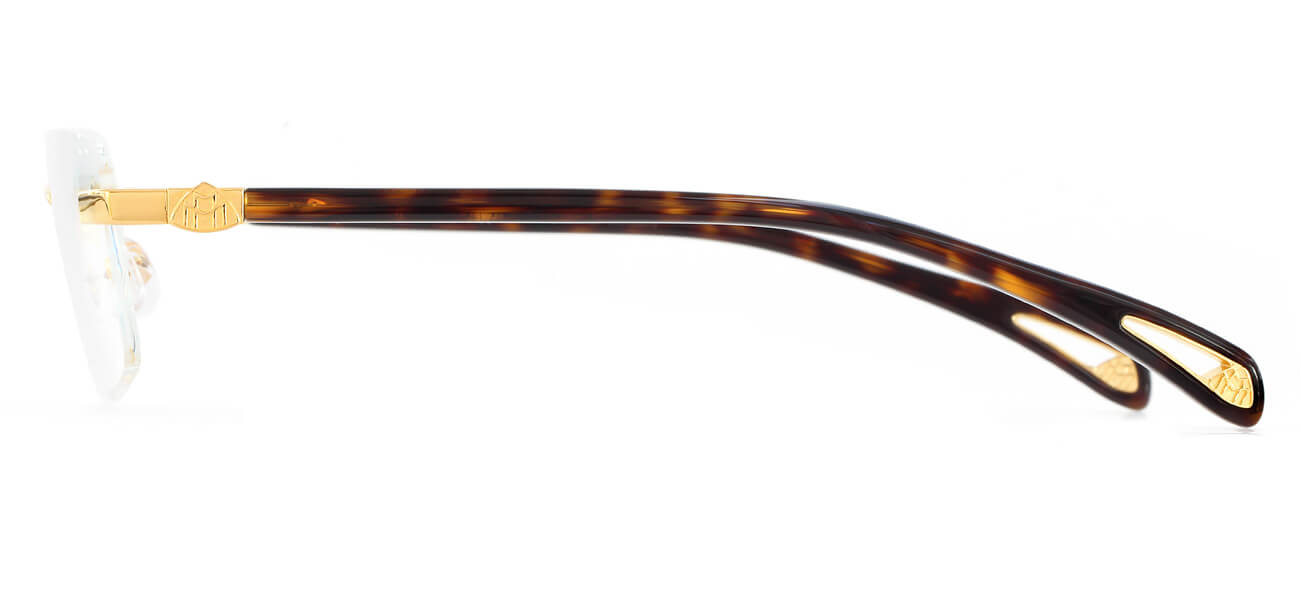 Mã màu G-AA với gọng màu mạ vàng 24K cùng với càng kính đồi mồi sậm bóng được hoàn thiện một cách tỉ mỉ, trau truốt đúng với đẳng cấp xa xỉ của thương hiệu Maybach