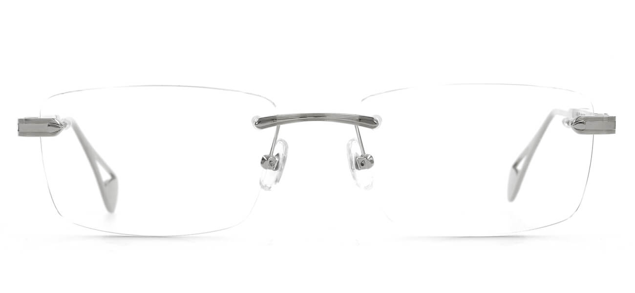 Mẫu gọng cận khoan ốc không vành thiết kế bản to chắc chắn, vuông vắn sử dụng chất liệu titan mạ vàng 24K điểm nhấn là càng kính dạng hộp vuông với chuôi kính titan không bọc nhựa được chế tác theo logo Maybach phần cuối chuôi càng