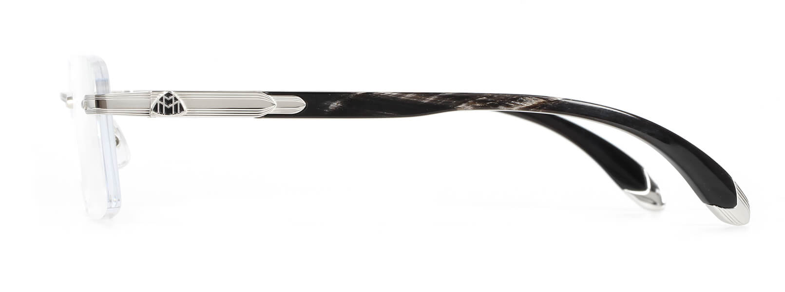 Mẫu gọng cận nam cao cấp thiết kế đặc trưng phong cách Đức, khỏe khoắn, chắc chắn và tinh xảo đến từng chi tiết nhỏ. Kiểu dáng không khung khoan ốc vuông vắn mạnh mẽ được chế tác hoàn toàn thủ công với chất liệu titan mạ vàng 24K, càng kính bản size trung chắc chắn, bề thế nổi bật với logo Maybach và các đường gân chỉ tinh tế