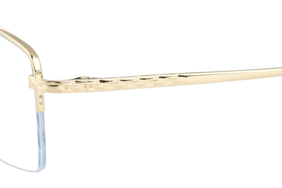 Gọng vàng đặc 18K với trọng lượng 18.1g được chế tác thủ công bởi những nghệ nhân kim hoàn từ Fukui Nhật Bản. Kiểu dáng cắt vành 1 nửa hình chữ nhật chuẩn mực với size gọng lớn 55-17.