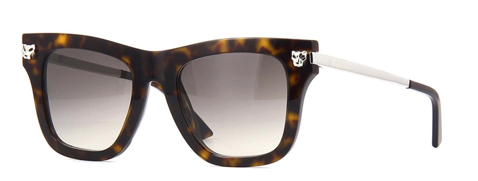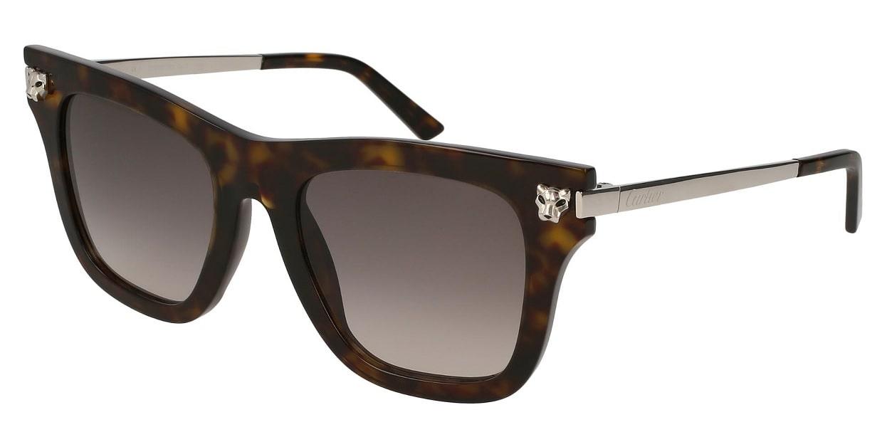 Kính mát Cartier PANTHÈRE DE CT0025S 002 Mẫu mới nhất năm 2018 với thiết kế đậm chất Ý thanh thoát, nhã nhặn, hài hòa khi phối đồ cũng như trang điểm. Thiết kế theo trào lưu thời thượng với bản vành dầy kiểu dáng mắt sếch. Bản khung với chất liệu nhựa Acetate bóng màu đồi mồi sậm kết hợp với càng kính bản vuông mạ platinum (trắng xám) cao cấp. Nổi bật với logo đầu báo của Cartier tạo nên sự khác biệt, nổi bật và ấn tượng từ ngay cái nhìn đầu tiên. Một thiết kế sang trọng, tinh tế, nổi bật với màu mắt trên đậm dưới nhạt màu xám nhẹ hài hòa với các phong cách trang điểm. Một mẫu kính mát siêu sang dành cho những người phụ nữ thành đạt, thượng lưu Size kính 50 - 20 -140
