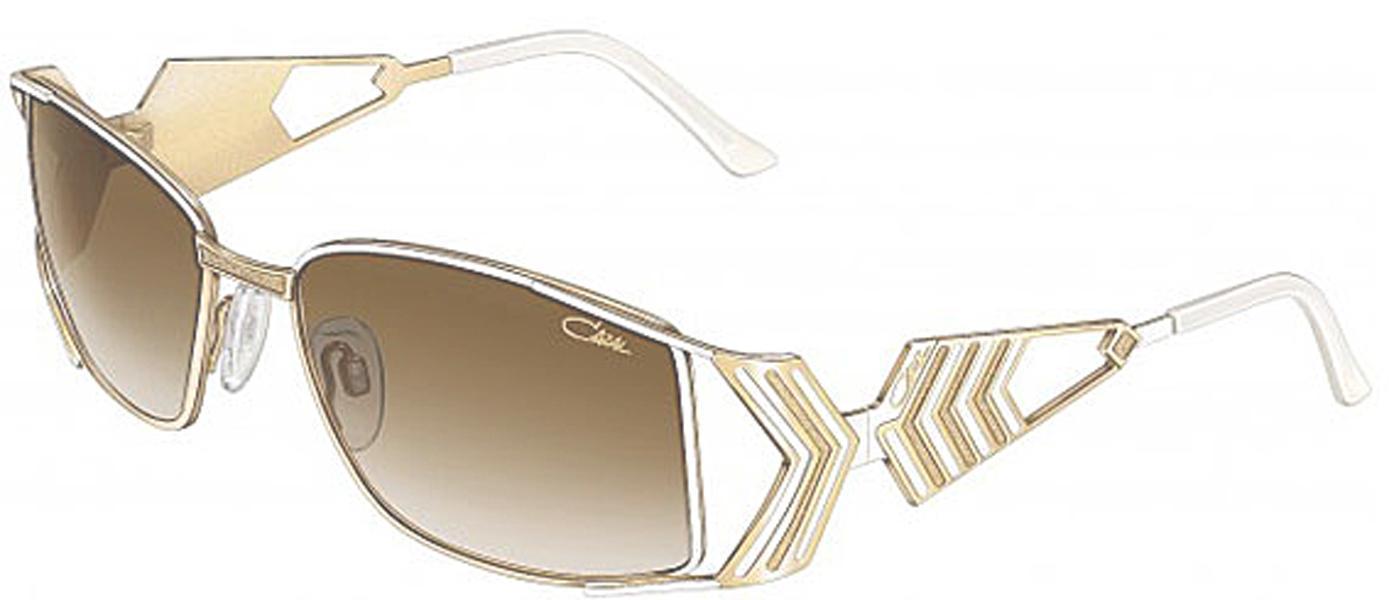 Kính mát Cazal 9011 334 mẫu kính size nhỏ với kiểu dáng ngang hơi vuông với càng kính cửa sổ được tạo họa tiết hình mũi tên. Với mạ vàng 18k sơn tay viền trắng kết hợp với mắt kính hai màu nâu nhạt tạo nên sự nổi bật nhưng không mất vẻ đẹp sang trọng, quý phái sang trọng.