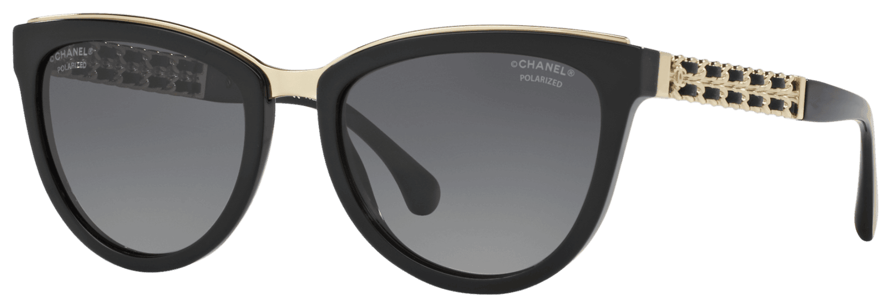 Kính mát Chanel CH5361Q C501S8 với style mắt mèo của những quý bà thập niên 60-70 nối hai mắt bằng một bản kim loại lớn với điểm nhấn đặc trưng của thương hiệu thời trang xa xỉ Chanel là phần càng kính được thiết kế bản lớn, chế tác tin xảo khi kết hợp kim loại với đan xoắn bằng chất liệu da thật. Màu C501S8 với khung gọng có gam chủ đạo màu đen bóng kết hợp với tròng kính Polarized siêu nét màu ghi trên đậm dưới nhạt. Phần kim loại mạ vàng bóng sáng kết hợp với sợ da thật màu đen được tết khéo léo mang tới một đẳng cấp xa xỉ của những nhà thiết kế thời trang kính mắt Chanel