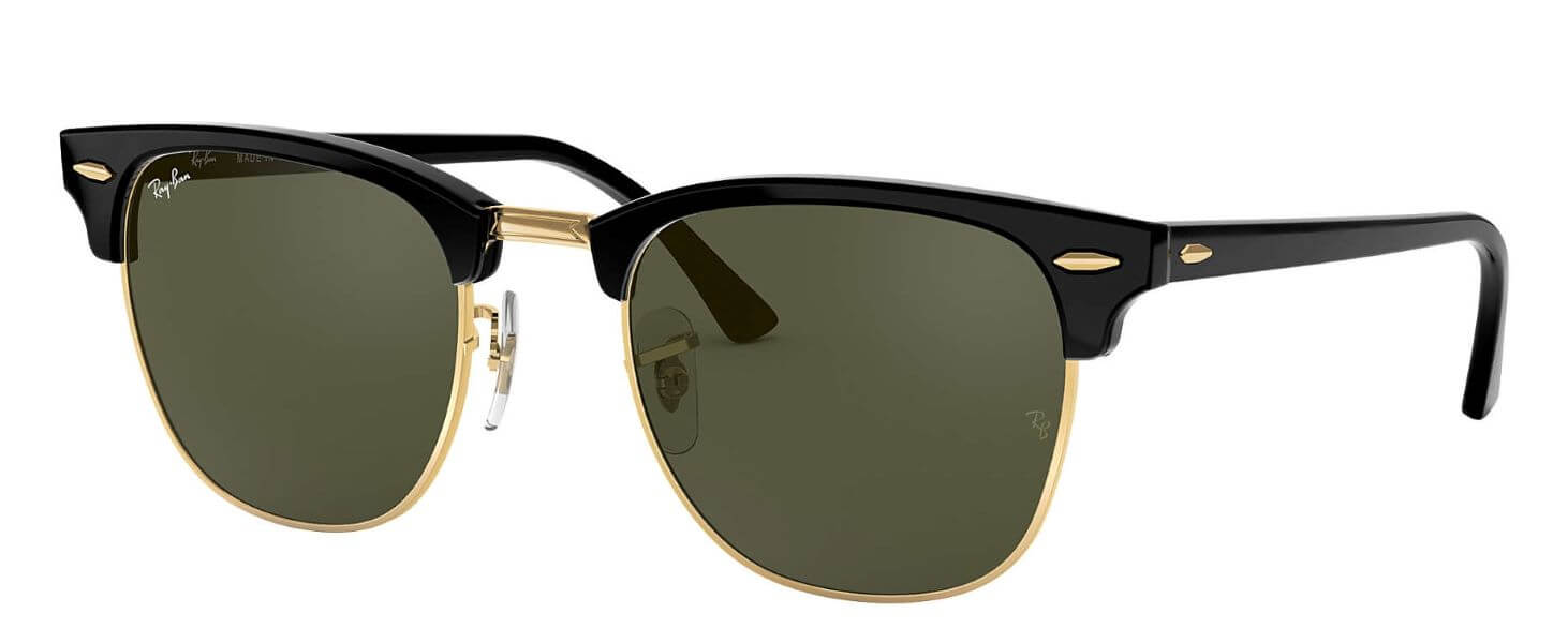 Mẫu Clubmaster hoàn toàn mới với sze lớn 55 dành riêng cho thì trường Châu Á mã màu W0365 cơ bản truyền thống với nhựa acetate đen bóng kết hợp với khung kim loại mạ vàng bóng tròng kính xanh lá G15 đặc trưng của hãng Rayban.